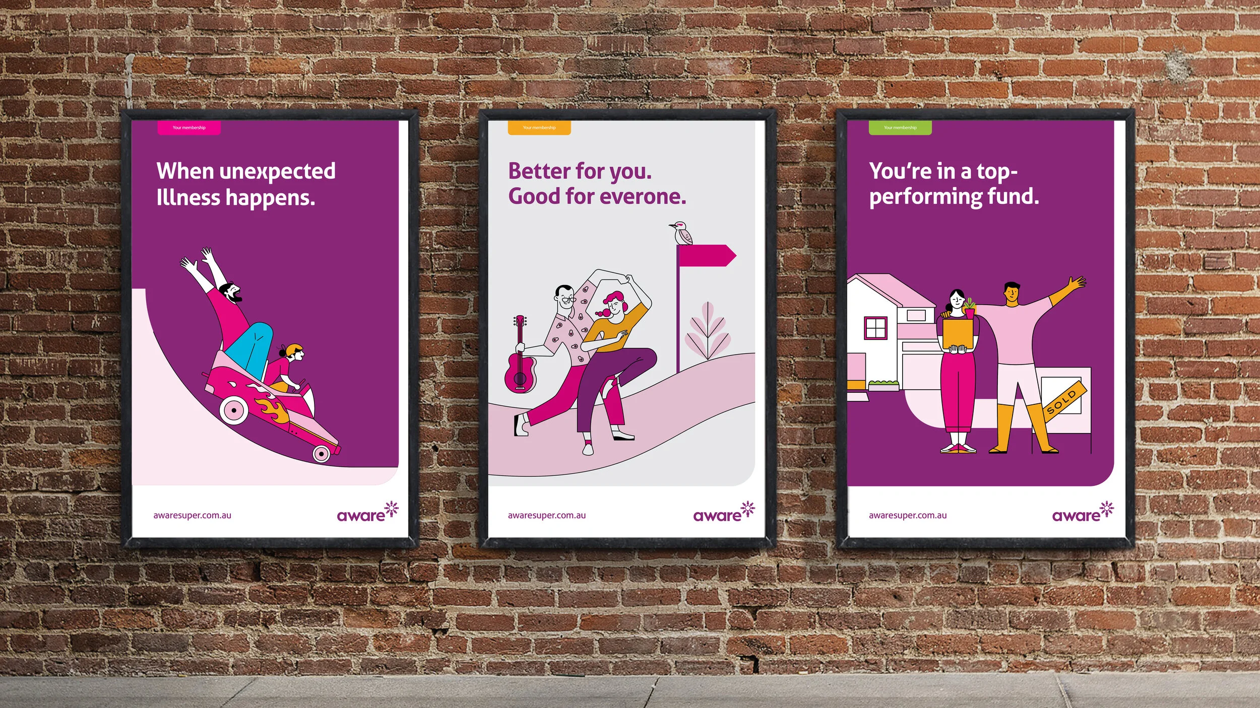 First State Super wanted to refresh its brand and adopt the new name Aware Super. The job was to bring the refreshed brand to life, through a new design system reflecting the evolved strategy and the delivery of a more relevant, sophisticated and eye-catching identity that resonated with consumers.